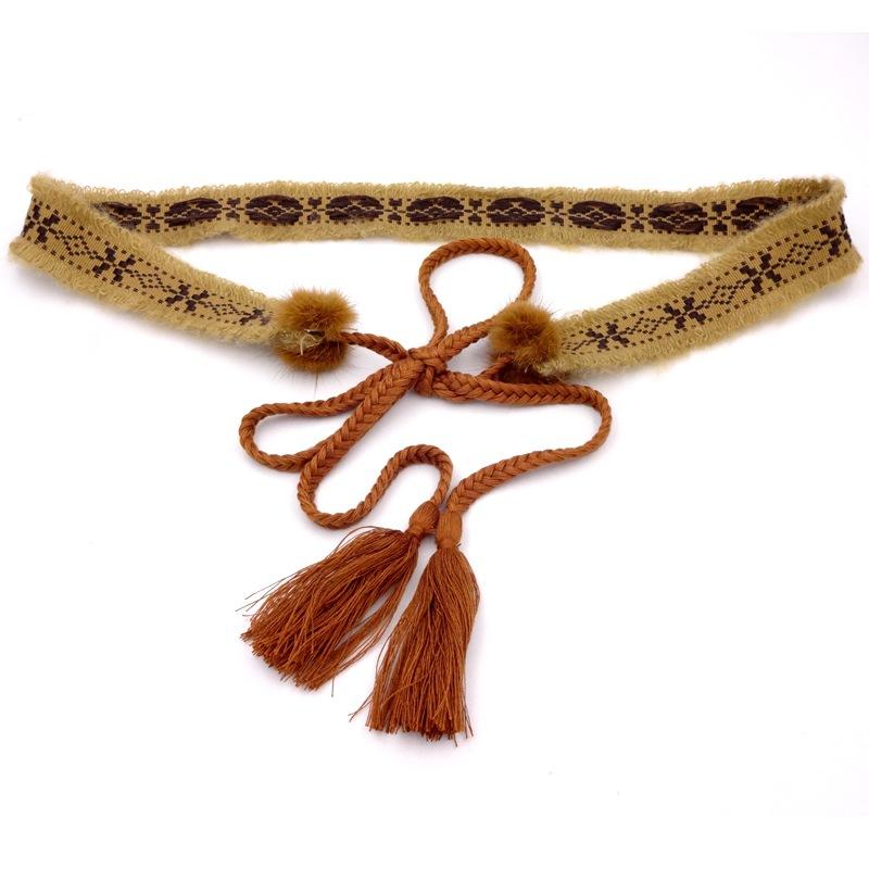 ワンピース 春秋冬 漢服風 レトロ 民族調 チャイナ風 古典的 刺しゅう ミンクファー装飾 綿麻素材 タッセル飾りベルト付き ロング丈