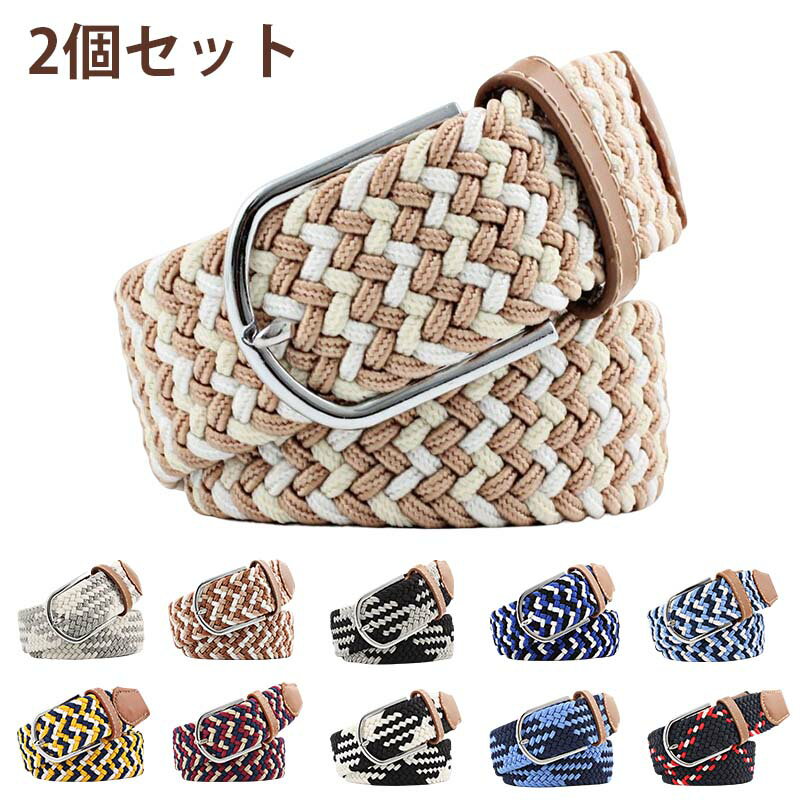 ベルト メンズ カジュアル キャンバス 布 おしゃれ ストレッチ性 編み ゴルフ アウトドア ズボン ブラック ブルー