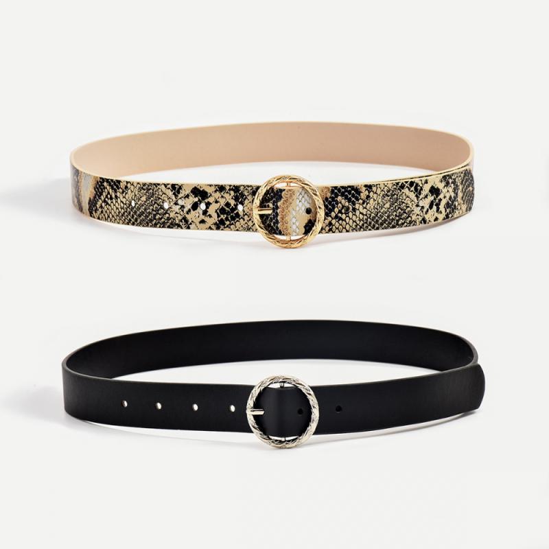 ベルト レディース 丸型バックル 蛇柄 シンプル ベーシック フェイクレザー PU