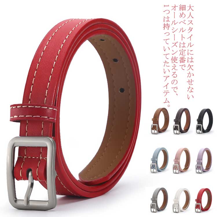 レディース フェイクレザー 細ベルト ウエストマーク バックル カジュアル おしゃれ ビジネス PUレザー かわいい