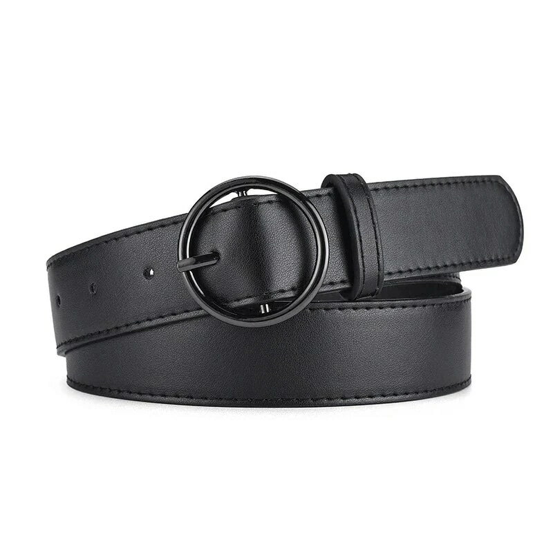 ラウンドバックルレディースベルト、ハイエンドスタイル、デニムベルト。