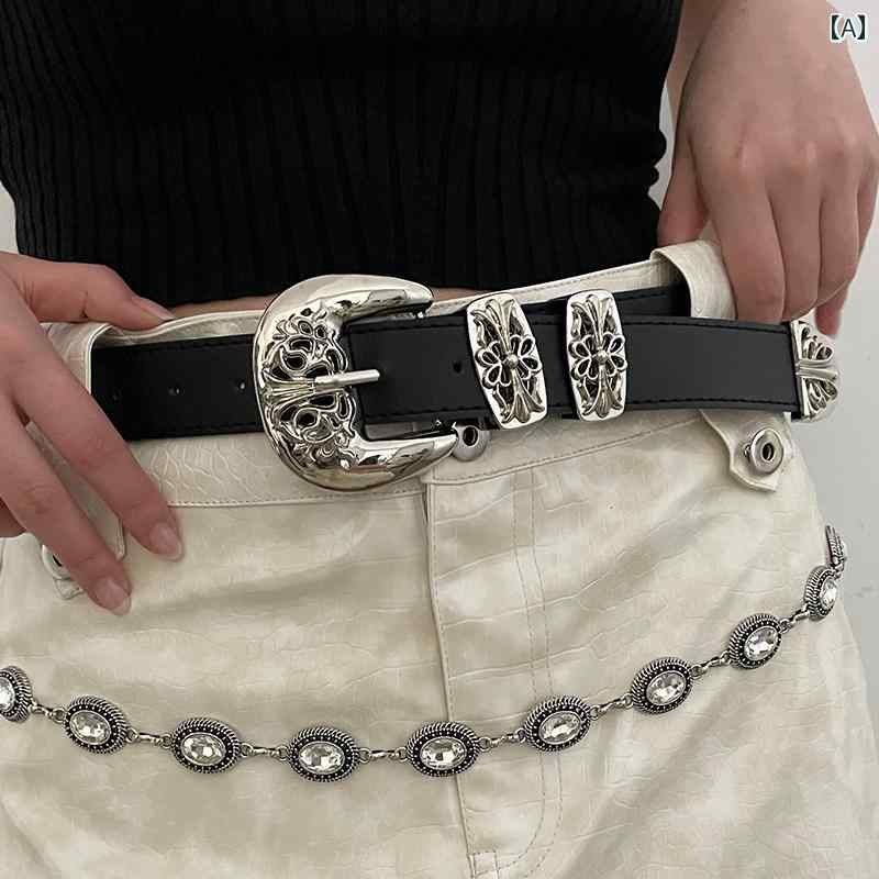 ベルト レディース 黒 ワイド アメリカン ヴィンテージ風 Y2K 太め 個性的 おしゃれ 装飾