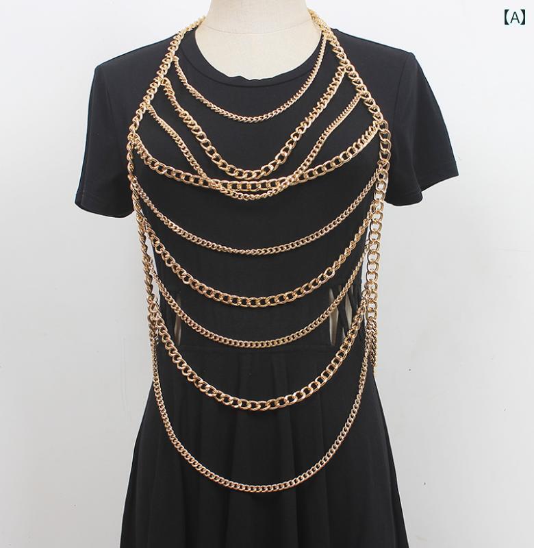 ファッション ボディ アクセサリー ジュエリー アメリカン ロング チェーン メタル ネックレス トップス ダンサー ゴールド
