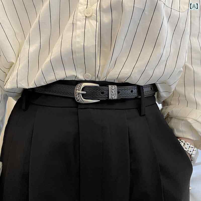 レディース ベルト カジュアル 革 ベルト レディース イン スタイル 夏 装飾 アメリカン レトロ ブラック レザーベルト