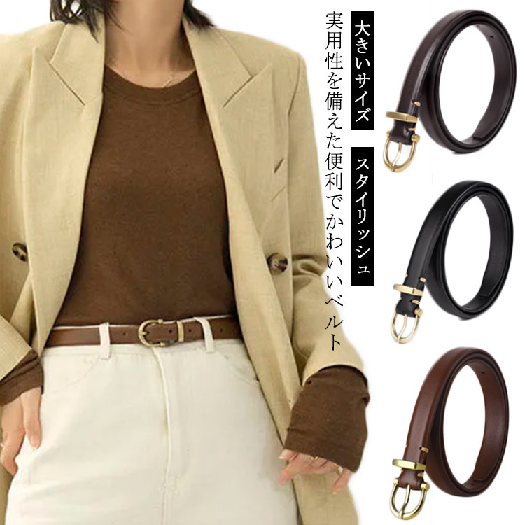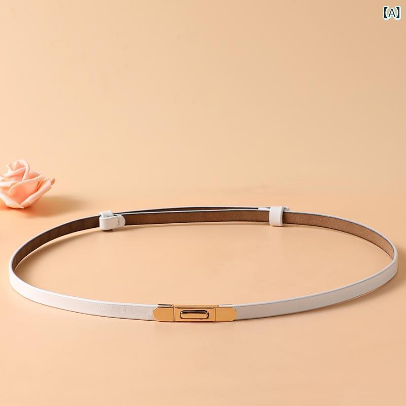 ベルト レディース ブラック 細身 革 韓国 シンプル 装飾 おしゃれ カジュアル 白