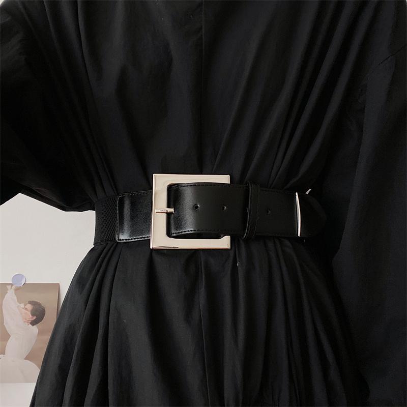 女性 ベルト 凹 面 形状 PU スクエアバックル ユニセックス ワイド シック 学生 韓国 ファッション