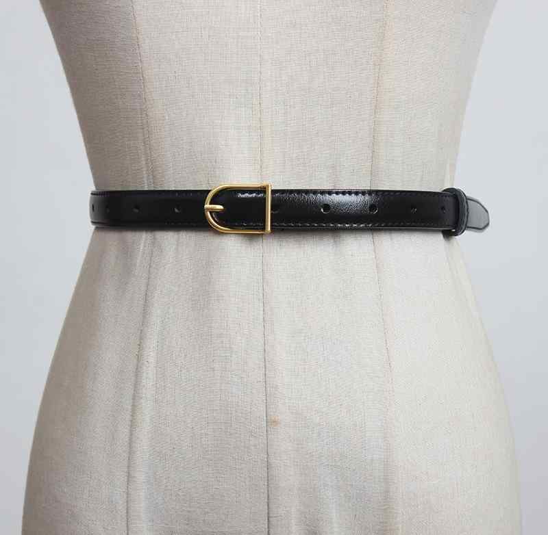 【送料無料】レディース メール便 韓国 ベルト フェイクレザー Dバックル ウエストマーク 黒 細ベルト キャメル ブラウン