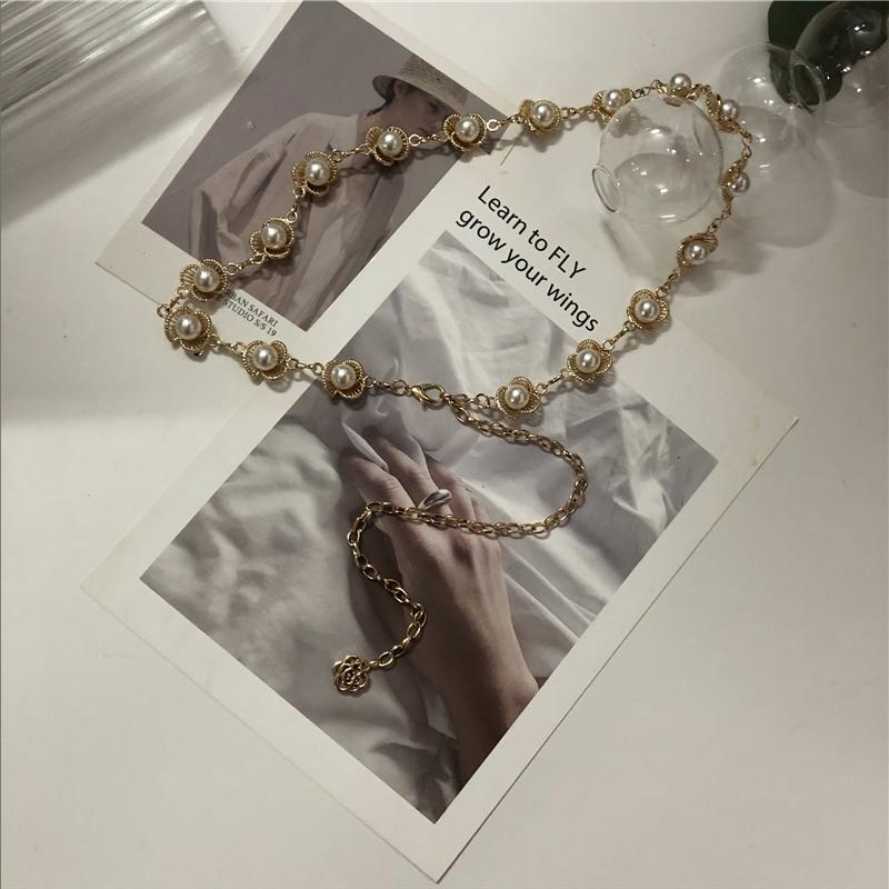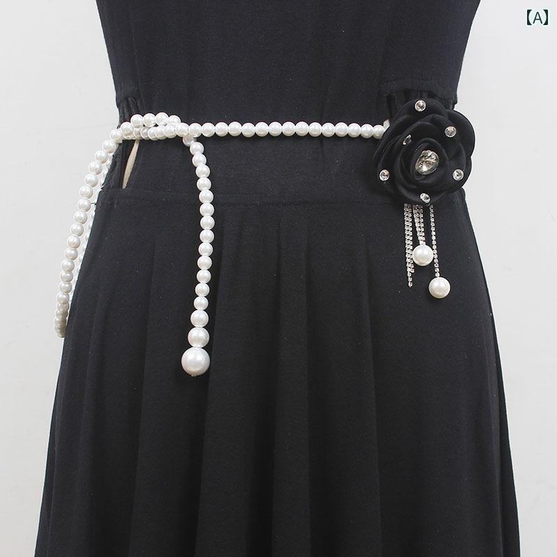 ドレス レディース ベルト おしゃれ パール フラワーベルト 韓国 装飾 スリム ウエスト チェーン メタルチェーン