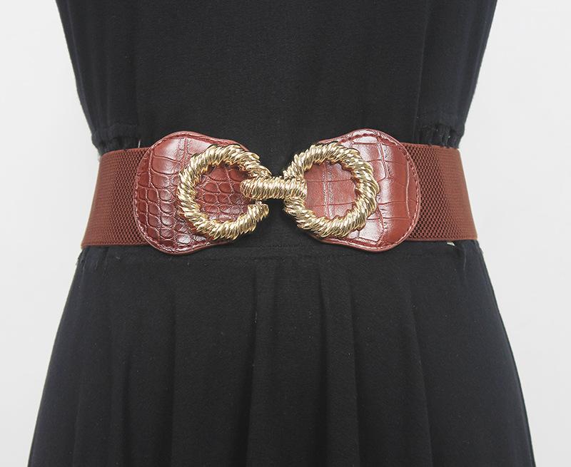 レディース カジュアル アクセサリー ベルト 幅広 おしゃれ アメリカ レトロ 弾性 ワイド ガードル 装飾 ドレス ファッション 黒