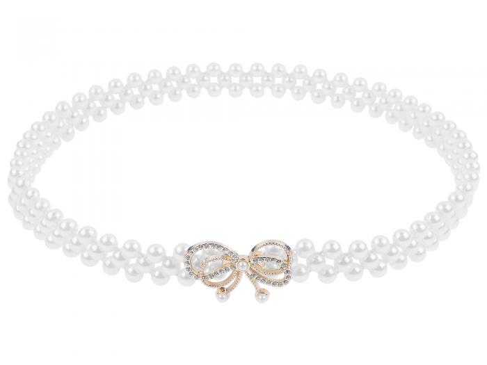 uxcell レディース 細ベルト ウェストベルト ラインストーン装飾 ビーズ リボン 結婚式 グレー 274x5cm