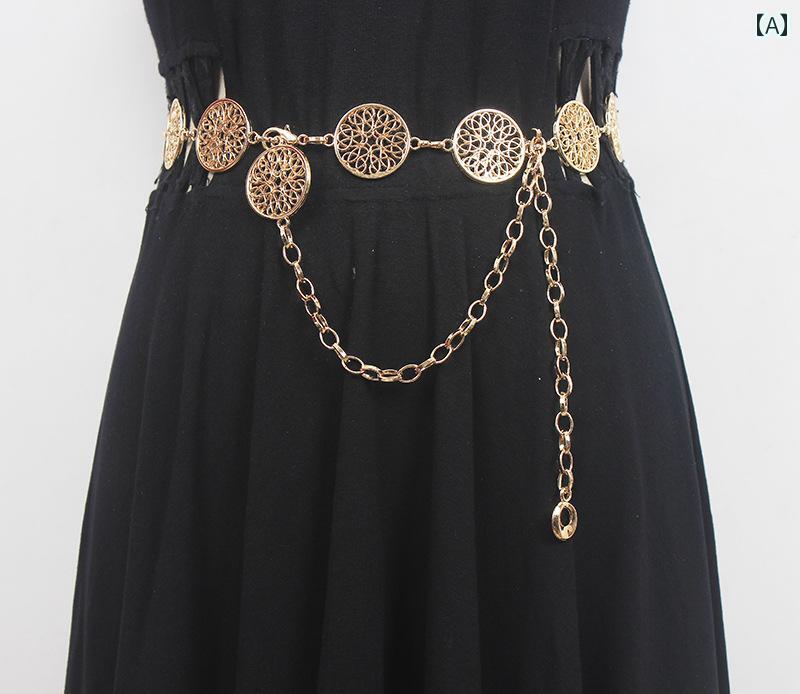 ゴールド ウエスト チェーン ファッション アクセサリー メタル ベルト レディース 装飾 スカート ドレスアップ 豪華感