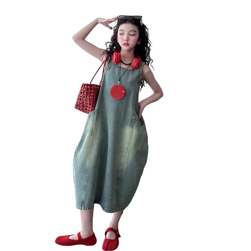ワンピース 女の子 子供 ベビー 背 अंबै 夏物 学院風 プリンセススカート チュールスカート 藏青色 コットン