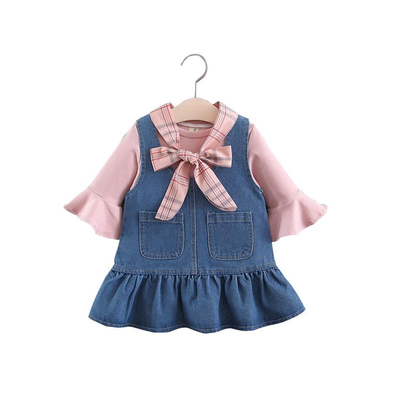 子供服 長袖Tシャツ デニムスカート 2点セット ガールズ 女児 ベビー服 幼児 普段着 春秋 綿100% かわいい 白 黄色 ピンク系