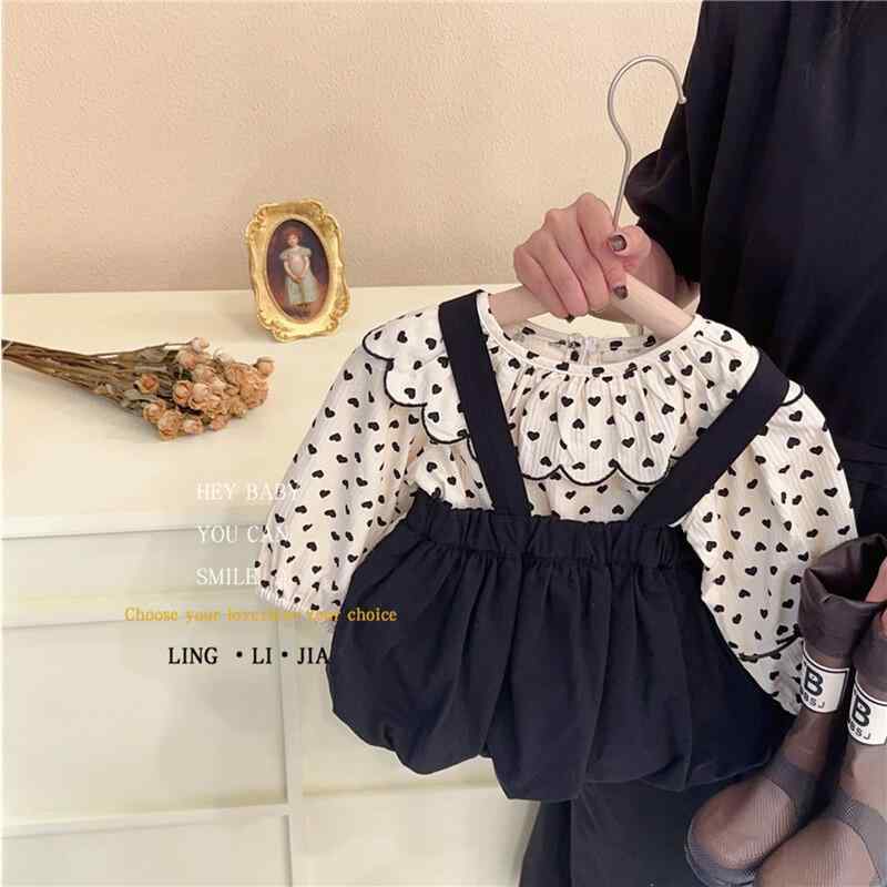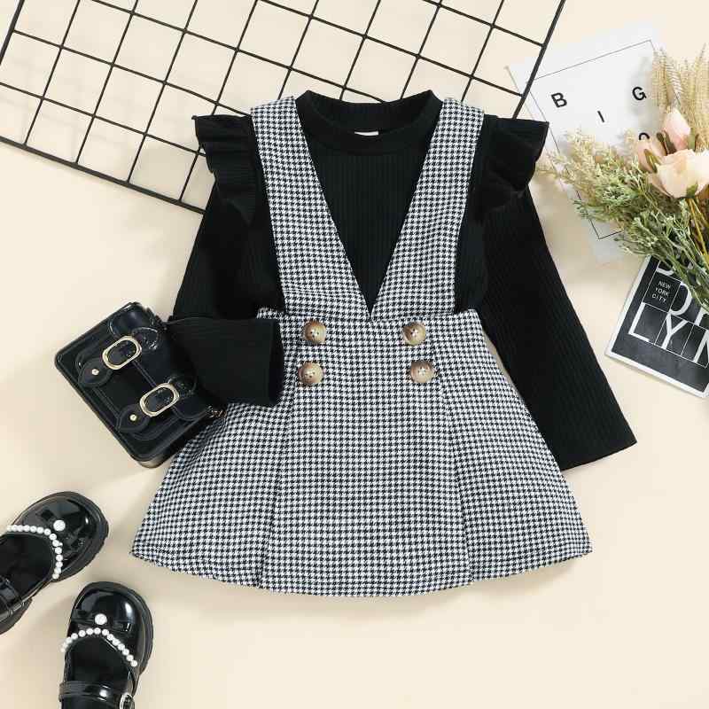キッズ 女の子 セットアップ チェック柄 サロペットスカート 長袖トップス 2点セット 春秋 綿95% 通学 普段使い