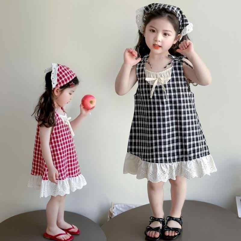 ワンピース ガールズ 子供服 格子柄 ノースリーブ サマードレス かわいい 夏 90 100 110 120 130 140 赤 黒