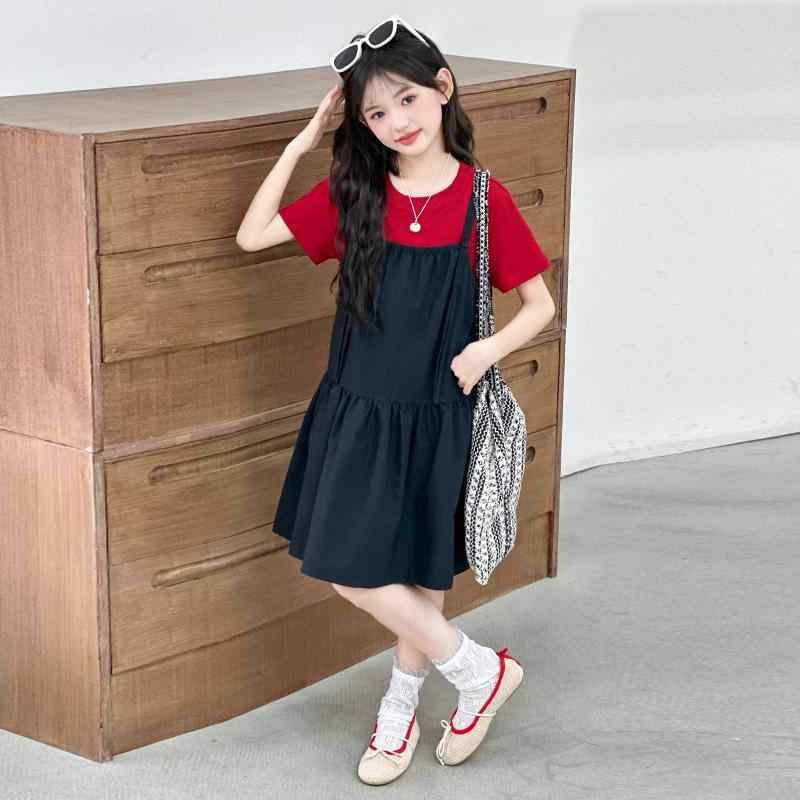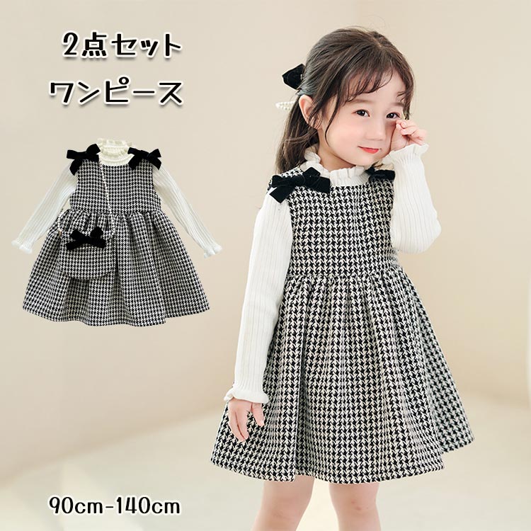 ジャンパースカート 女の子 ワンピース 春秋 赤 ジャンスカ 黒 トップス インナー Aライン かわいい ボタン シンプル カジュアル