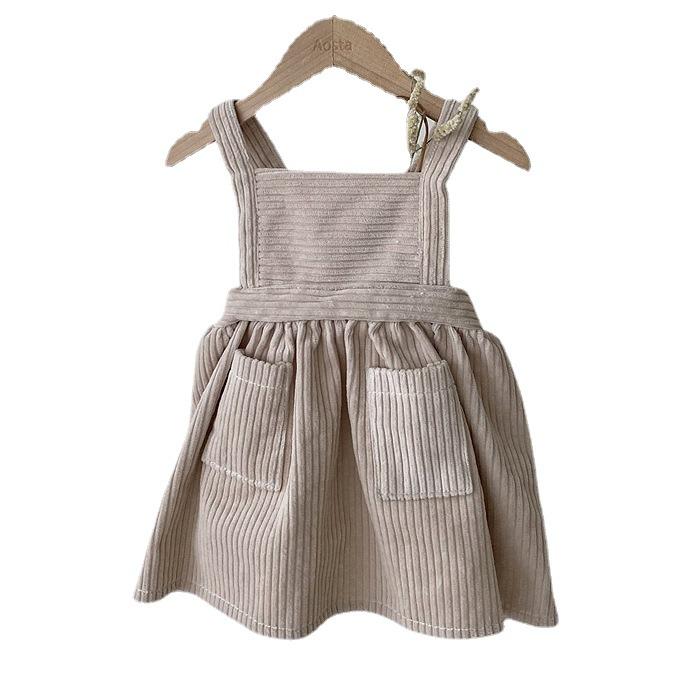 ワンピース ベビー キッズ 春秋 韓国風 コーデュロイ 背心裙 ノースリーブ Aラインスカート ベージュ ブラウン 綿100%