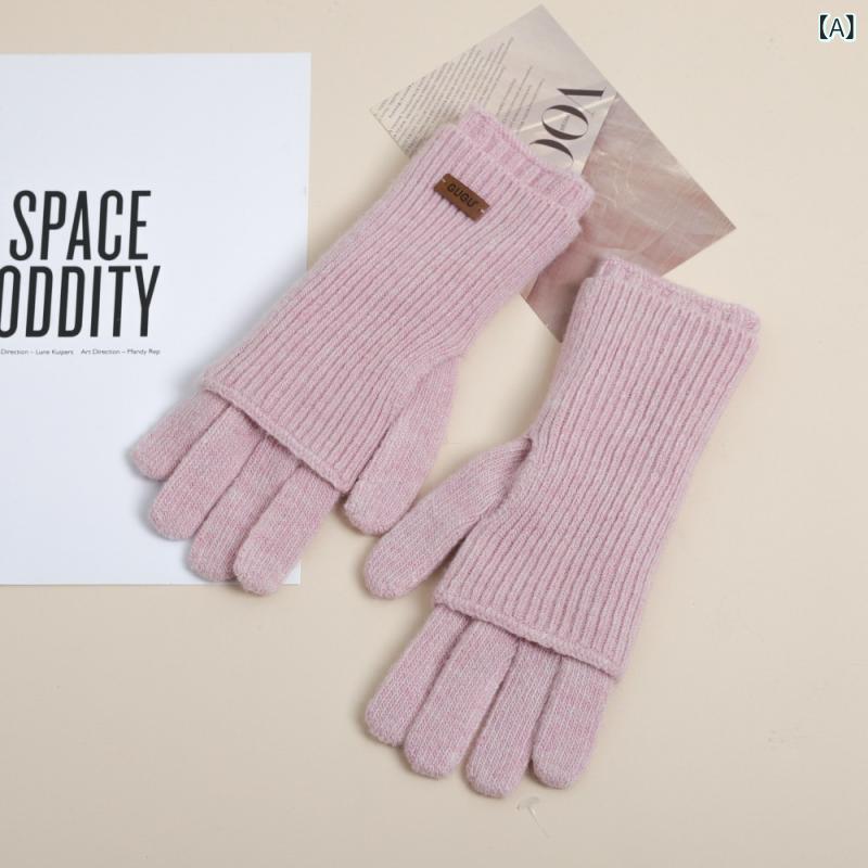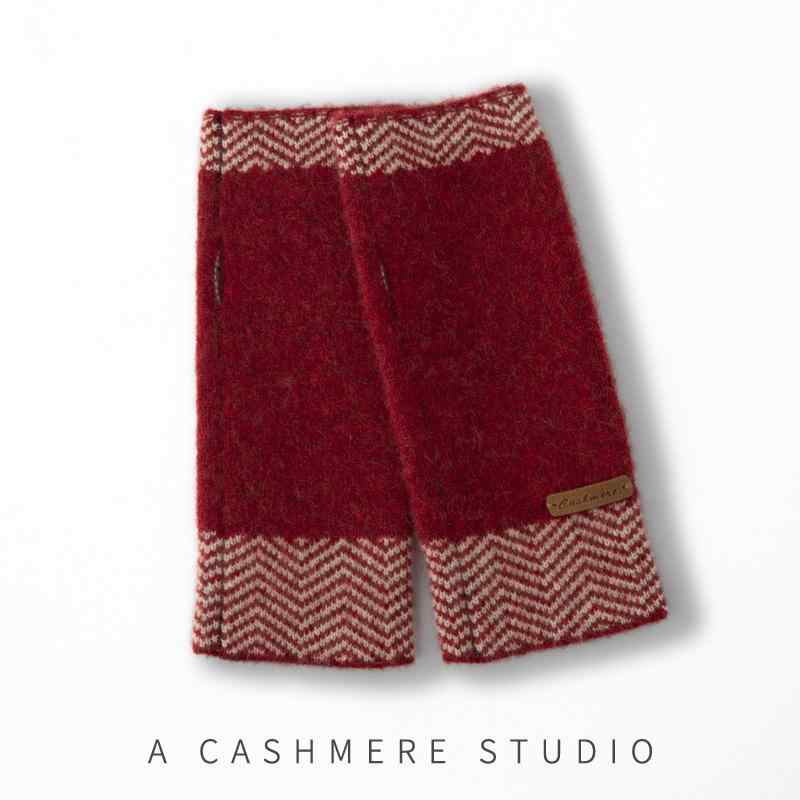秋冬 ニット 指抜き手袋 ロング 厚手 暖か 防風 防寒 切り替え カシミヤ 100%