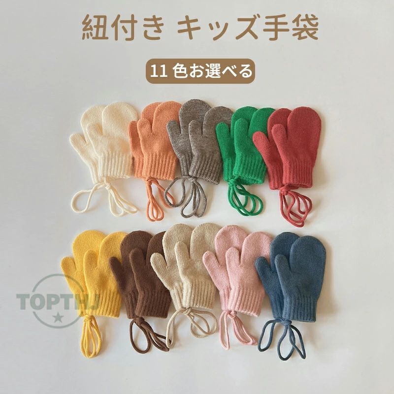 手袋 子供用 ニット手袋 冬用 裏起毛 厚手 男の子 女の子 全指 ミトン 紐付き 防寒 あったか かわいい 小熊 刺繍
