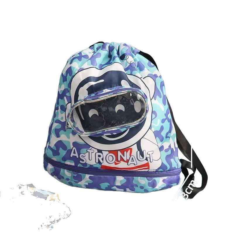 水泳バッグ キッズ 子供用 乾湿分離 防水 リュック カートーン ビーチ 大容量 ファスナー付き 立方体 ポリエステル ブルー ピンク