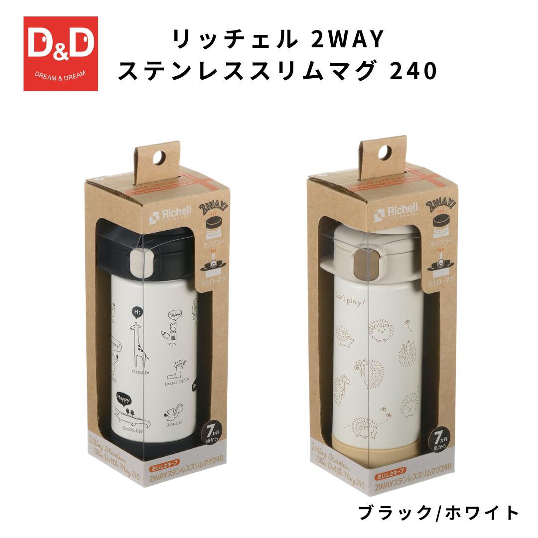 リッチェル 2WAYステンレススリムマグ 240 ホワイト ブラック ストロー付き ベビー用 大人用 温冷専用 ギフト