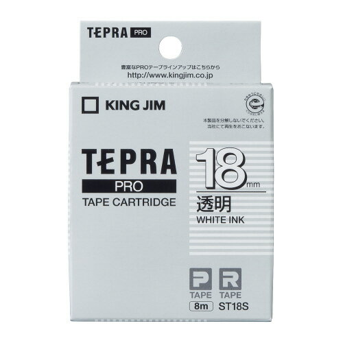 テプラPROテープカートリッジ 透明ラベル 透明に白文字18mm幅×8mST18S【キングジム】