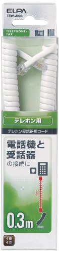 エルパ (ELPA) TEL用受話器コード 電話線 4極4芯 0.3m TEW-J003