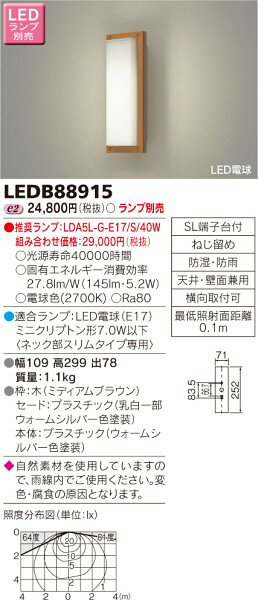 東芝ライテック LEDアウトドアブラケット LEDB88915