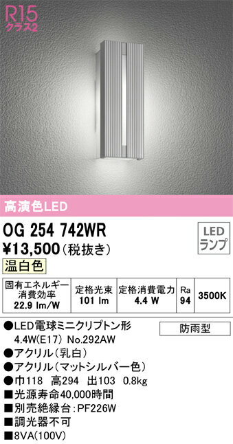 βオーデリック/ODELIC 【OG254462R】エクステリア ポーチライト 高演色LED 昼白色 LED一体型 防雨型 化粧ネジ式