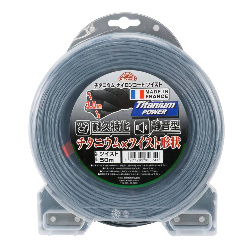 セフティー3 チタニウム ナイロンコード ツイスト [園芸 仮払機 草刈り] 直径3.0mm×長さ50m