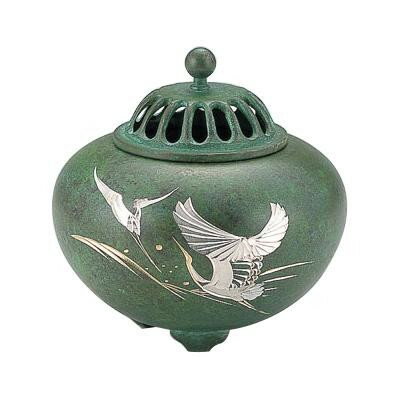 高岡銅器 銅製香炉 平丸香炉 波鶴 132-05