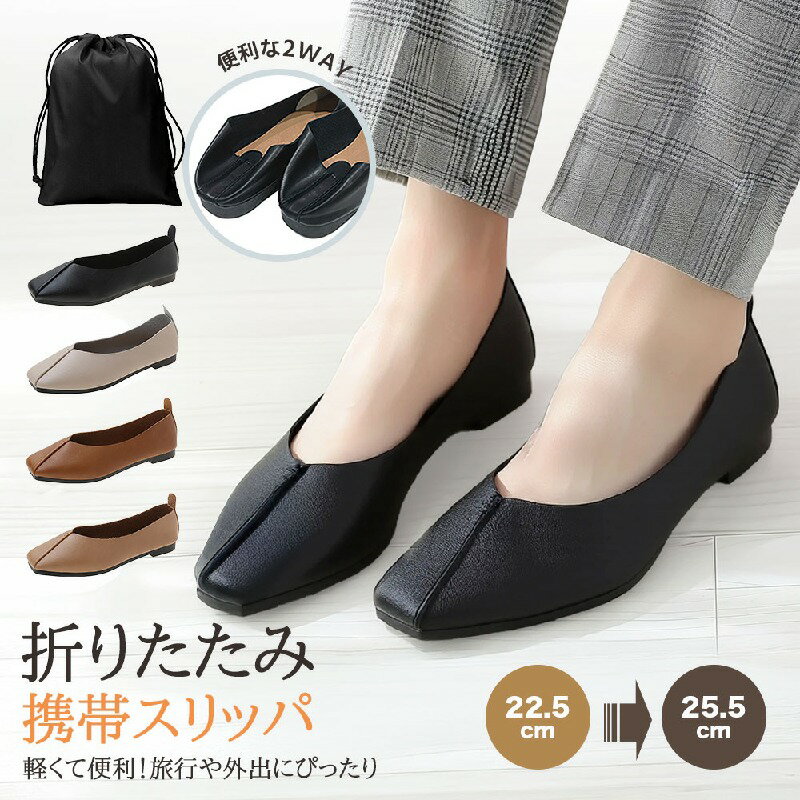 【送料無料】ルーム パンプス スリッポン フラット 歩きやすい ぺたんこ ポータブル 折りたたみ 婦人靴 バレエシューズ 携帯シューズ