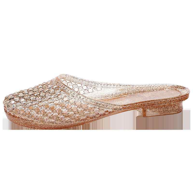サンダル レディース ルームシューズ スリッパ 室内履き つま先あり PVC 柔らかい 快適 通気性 滑り止め 黒 金色 ピンク
