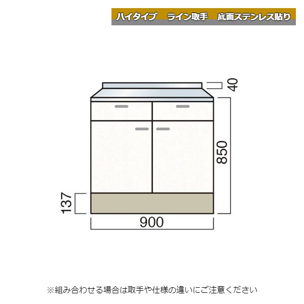 レマン ハイタイプ ライン取手 調理台 幅90cm 底面ステンレス貼り キッチン