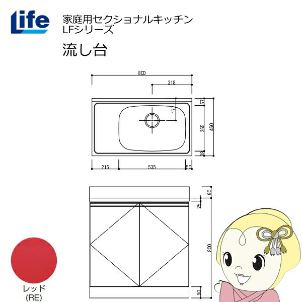 レマン デッキ型 ハンドル取手 水栓穴あり 一連式流し台 幅165cm 底面ステンレス貼り キッチン