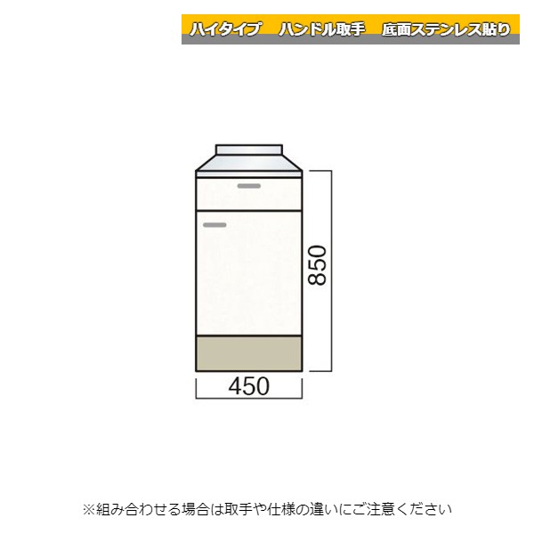 レマン ハイタイプ ハンドル取手 調理台 幅45cm 底面ステンレス貼り キッチン