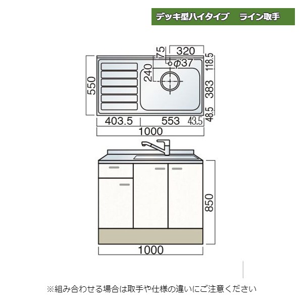 【11月はエントリーでP10倍】 レマン デッキ型ハイタイプ ライン取手 水栓穴あり 水切付流し台 幅100cm キッチン