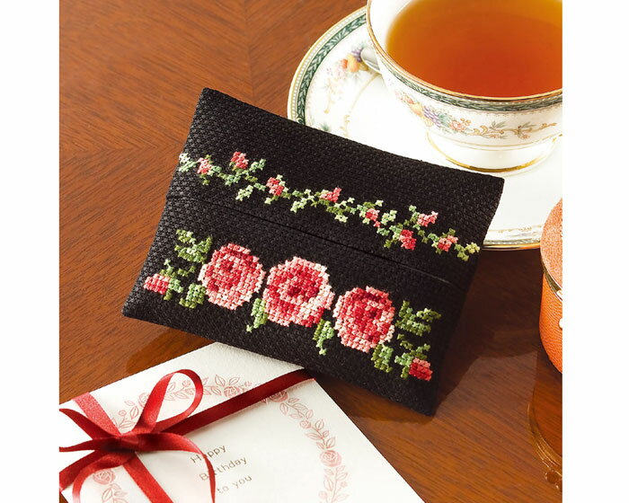 ししゅうキット 花刺しゅうの優しい小物 ティッシュケース バラ 9015 (取り寄せ品) (メール便可)
