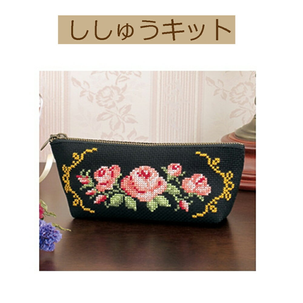 【手作りキット 花刺しゅうの優しい小物】9044 ペンケース バラ【3cmゆうパケット可】