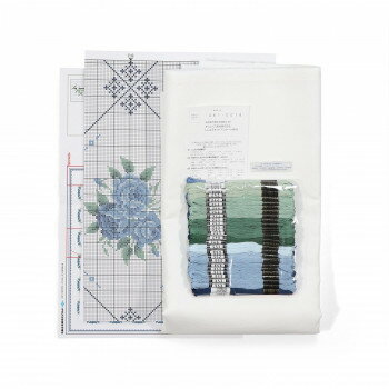 オノエ・メグミ クロスステッチキット ブルーローズモチーフのテーブルクロス 刺しゅうキット 1204