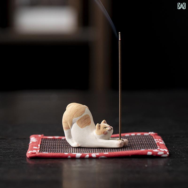 香炉 の 陶器 子猫 アロマセラピー バーナー かわいい 手 描き 家庭の 室内 使用 お 香 立て 香の 儀式に 適しています。