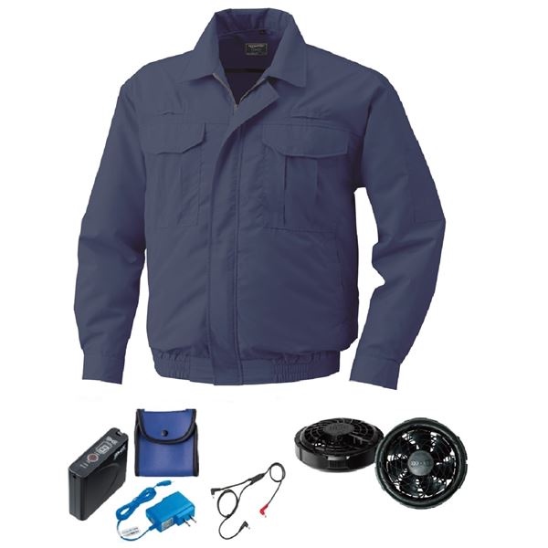 【クーポン配布中】KU9055F 空調服 R 綿薄手 フルハーネス対応 FAN2300B・RD9261・LISUPER1セット ダークブルー M