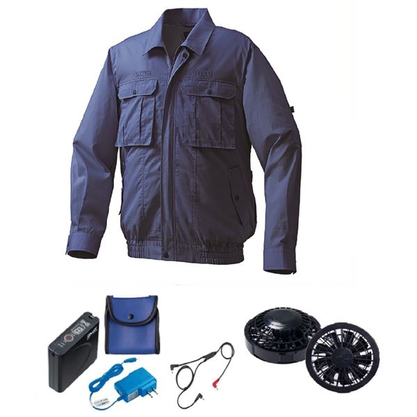 KU92100 空調服 R 綿・ポリ混紡 フルハーネス仕様 FAN2200B・RD9261・LISUPER1セット ネイビー 3L