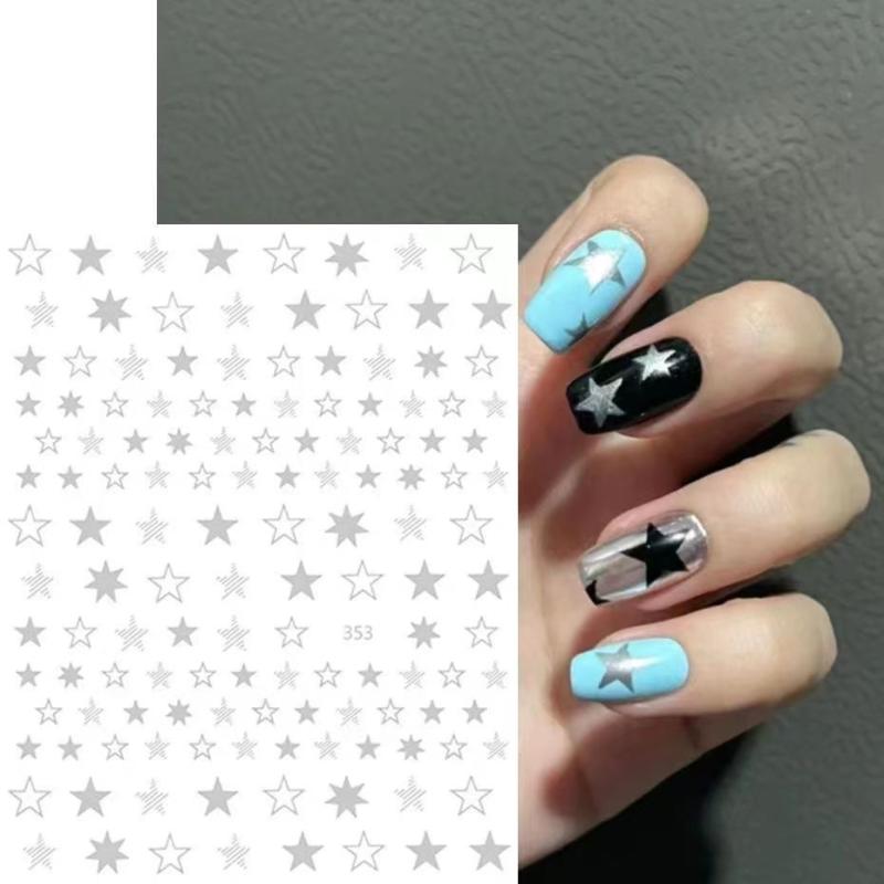 ネイルシール レディース 星柄 6枚セット 穴あきスター モノクロ シルバー かわいい 普段使い