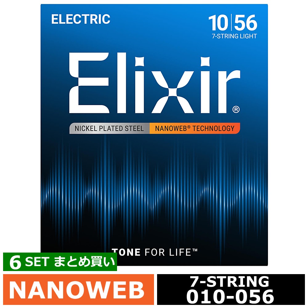 6セット 7弦用 Elixir Nanoweb #12057 Light 010-056 エリクサー コーティング弦 エレキギター弦
