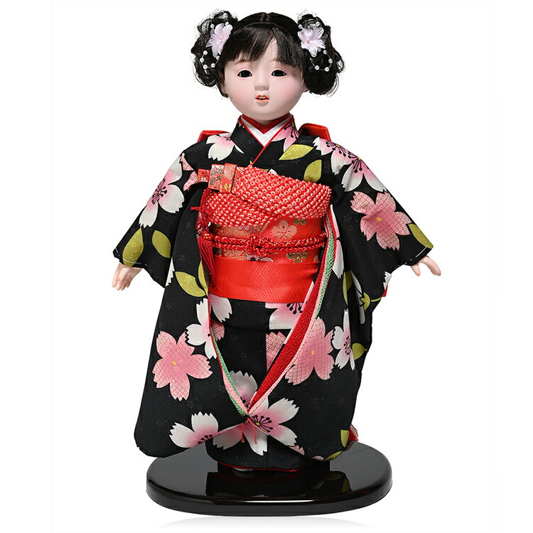 【ひな人形】【市松人形】13号市松人形:正絹熨斗め柄:公司作:ケース入り【浮世人形】