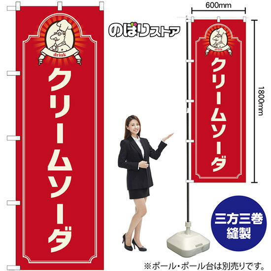 のぼり旗 クリームソーダ menu (赤) No.52709 (受注生産品・キャンセル不可)