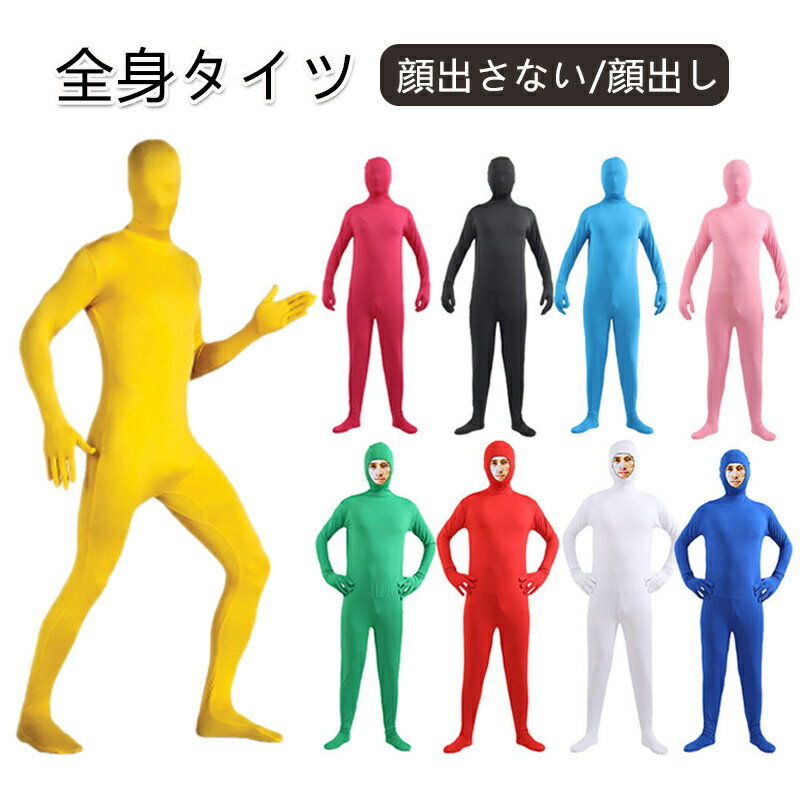 全身タイツ 女性 男性 ハロウィン コスプレ 仮装 おもしろ ステージ パーティー ダンス 衣装 単色 顔まで 緑 青 紫