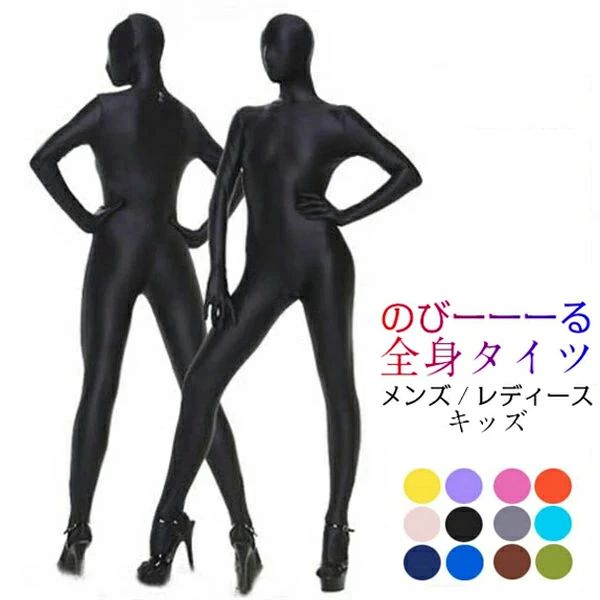 【コスプレホリック】全身タイツ 光沢 コスプレ 3色 子供 大人 女性 男性 大きいサイズ 顔なし ハロウィン 新年会 忘年会