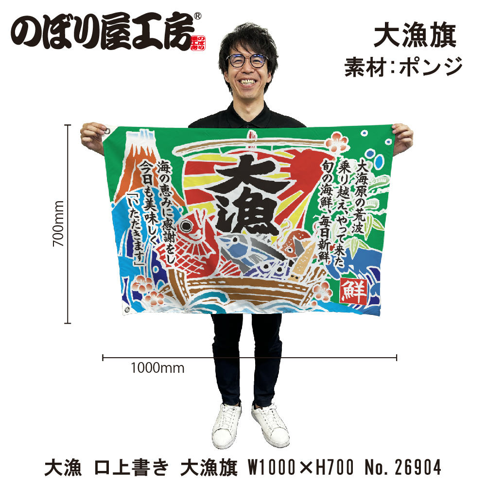 大漁旗 W1000×H700mm 大漁 口上書き 26904 ポンジ 大漁祈願 船旗 進水式 門出 長寿 誕生 開店【受注生産品】